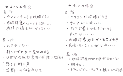 自分なりにユミルとティアを主人公にした場合の良い点・悪い点をまとめてみた。