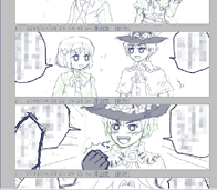 この絵で1コマに1時間前後時間がかかるわ、筆圧による指のダメージをくらうわで前途多難な予感です。